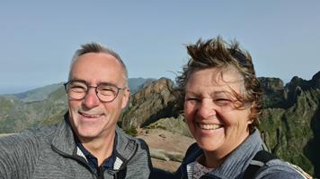 Heute ging es früh morgens los in die Mitte der Insel, wo die höchsten Berge der Insel sind. Auf den zweithöchsten Berg kommt man mit dem Auto schon fast bis zur Spitze. Die letzten paar Meter musste man noch zu Fuss machen. Das Wetter war klar und man konnte über dem Meer die Wolkendecke sehen. Die Aussicht hier auf 1818 Meter hohen Pico do Arieiro war atemberaubend. Den Gipfel hatten wir zeitweise für uns allein. Weiter fuhren wir dann nach Ribeiro Frio. Hier besichtigen wir die grösste Forellenzucht der Insel. Anschliessend ein Spaziergang zum berühmten Balcoes (Balkon) oberhalb des Vale de Ribeira da Metada. Hier eine top Aussicht in die Berge bis hinunter zum Meer. Gegen Mittag erreichen wir Porta da Cruz an der Nordküste. Hier mussten wir etwas Rum testen, Carol etwas mehr, denn ich musste fahren. Natürlich verliessen wir den Laden nicht mit leeren Händen. Nun wollten wir zum höchsten Punkt der Insel, doch die Strasse war gesperrt. Warum, wussten wir nicht so genau. In Santana bewunderten wir die kleinen Häuser mit ihrem Strohdach. Einfach nur schön… Die Rückfahrt zum Hotel führte dann über die Hügelige Landschaft. Wir nahmen nicht die Schnellstrasse, da man da vieles verpasst wegen den vielen Tunnels. Es gibt auf der kleine Insel Madeira rund 140 Tunnels. Today we left early in the morning for the centre of the island, where the highest mountains of the island are. You can almost reach the top of the second highest mountain by car. The last few metres had to be done on foot. The weather was clear and you could see the cloud cover over the sea. The view here on 1818 metre high Pico do Arieiro was breathtaking. We had the summit to ourselves for a while. We then drove on to Ribeiro Frio. Here we visited the largest trout farm on the island. Then a walk to the famous Balcoes (balcony) above the Vale de Ribeira da Metada. Here you have a great view of the mountains down to the sea. Around noon we reached Porta da Cruz on the north coast. Here we had to test some rum, Carol a little more, because I had to drive. Of course we didn't leave the shop empty-handed. Now we wanted to get to the highest point of the island, but the road was closed. Why, we didn't know exactly. In Santana we admired the small houses with their thatched roofs. Just beautiful... The way back to the hotel led us over the hilly landscape. We didn't take the expressway, because you miss a lot because of the many tunnels. There are about 140 tunnels on the small island of Madeira. |