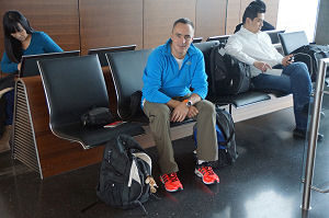 Auf dem Flughafen in Zürich herrschte Winter. Nach dem uns Dani, unser Nachbar, nach Zürich brachte, gingen wir zum Check In. Da unser Flugzeug erst mal vom Eis befreit werden musste, starteten wir mit rund einer Stunde Verspätung mit der Thai Airways nach Bangkok. Ein zwei Filme und dann etwas schlaf auf dem knapp zehn stündigen Flug. At Zurich airport it was deep winter. After Dani (our neighbour) dropped us off at the airport we checked in without problems directly to Yangon. We unfortunately left 1 hour 15 minutes late due to deicing. Fortunately with a good wind the captain managed to make most of this up and we landed at 6:15 in Bangkok. After walking through most of Bangkok airport for our transfer flight to Yangon we then sat in a bus that took us back to where we had started from! Morning fitness! |