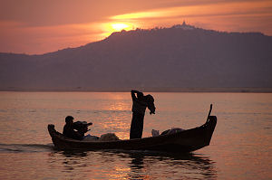 Der heutige Tag verlief etwas anders als ursprünglich geplant. Nach dem ich mit meinem Magen gestern ein wenig Probleme hatte, so hatte dies Carol heute etwas mehr. Sie verzichtete heute auf die Ausflüge und machte sich einen ruhigen Tag am Pool. Auch hatten wir die ersten Wolken am Himmel und dies nach neun Tagen! Ich machte mich mit Aung auf den Weg um tolle Fotos zu schiessen. Geplant war ein Meditationsausflug, den wir so oder so nicht machen wollten. Statt dessen Besuchten wir das kleine Dorf Min Nam Thu, mitten im Tempelmeer, dass gerade mal 400 Einwohner hatte. Weiter bestiegen wir den einen oder anderen Tempel und genossen die herrliche Aussicht über die vielen Tempel und Pagoden und machten dabei wirklich super Fotos. So um ein Uhr machten wir halt in einem Restaurant mit toller Aussicht auf den Irrawaady River und genossen gutes Mittagessen. Am Nachmittag ging es dann weiter mit einer Kutschentour, bei all den kleinen Pagoden vorbei, wo sonst kein Auto hinkommt. Um vier Uhr holten wir Carol vom Hotel, zum Bootsausflug, ab und fuhren zum River, wo bereits ein Boot für uns bereit stand. Wir bewunderten den Sonnenuntergang trotz den Wolken am Horizont. Bevor es dann ins Bett ging, packten wir noch unsere Koffer für den nächsten Tag, denn dann geht es an die Beach von Ngapali!!! Auch wenn wir Internet haben, so werden wir dann nicht über jeden Tag Berichten.Währe für euch wohl etwas langweilig:-) I had a quiet day by the pool as something I’d eaten didn’t agree with me! Rene went off to visit a local village and climb up a few temples. About 4pm they came back to pick me up for a boat trip on the Irrawaddy river for the sunset. Tomorrow we fly early morning to Ngapali for our beach holiday. |