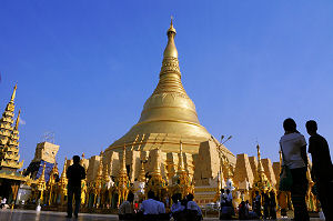 Morgens um sechs landeten wir sicher in Bangkok. Nur gerade mal zwei Stunden später ging die Reise weiter mit der Thai nach Yangon in Burma. Nach einer Stunde landeten wir sicher und begaben uns zu Gepäckausgabe. Auf dem Weg dorthin sahen wir bereits unseren Reiseleiter, der eine Tafel hoch hielt mit unseren Namen. Draussen stand auch schon der Fahrer in den Startlöcher, der uns dann zuerst mal zu unserem Hotel brachte. Nach dem Mittag wurden wir abgeholt und besichtigten erst mal den grossen Scotts-Market von Yangon. Als wir dann am River ankamen und hier viele Fähren sahen, liefen wir über die Strasse zum Fünfsterne Hotel „Strand“. Hier gab es einen typisch englischen Afternoon Tea. Anschliessend bestaunten wir die grösste Pagode des Landes, der Shwedagon Pagode. Der Anblick war fantastisch und sehr imposant. Gegen fünf wurden wir dann zum Hotel zurück gebracht, denn nach der langen Anreise waren wir schon sehr müde. So um acht und einem Bierchen vielen wir dann ins Bett. After arriving in Yangon in Burma and clearing customs and immigration our travel guide picked us up from the airport to take us to our first hotel. After lunch we headed off on our first sight seeing tour. First stop Scotts Market where just about everything was to be bought. We then took a look at the port and the very packed ferries. We then had a traditional English afternoon tea in the 5 star Strand Hotel. This perked us up enough to enjoy a visit to the largest Pagoda in Myanmar, the Shwedagon Pagoda. A most impressive set of buildings. Towards 5pm we headed back to out hotel, shower, snack and a couple of beers then bed! |