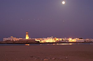 Heute ging es weiter durch das Landesinnere via Birkat Al Mawz nach Sinaw. Hier findet täglich ein sehr interessanter Beduinenmarkt statt, welcher am interessantesten an Wochenenden ist. Kamele, Ziegen, Schafe, getrockneter Fisch und grosse Dattelsäcke werden hier gekauft und verkauft. An diesem Tag mussten wir längere Strecken fahren, bis wir dann nach Mintrib kamen. Hier mussten wir den Reifendruck auf verringern um danach in der Wüste im Sand gut voran zu kommen. Nach zwei Kilometer gelangten wir in die fantastische Wüste Wahiba Sands. Im Gegensatz zu den Sanddünen der Rub al-Khali wandern die Dünen der Wahiba Sands kaum. Unter den sandigen Oberfläche befinden sich versteinerte, so genannte äolische Geländeformationen, die durch Windeinwirkungen entstanden sind. Es war ein tolles Erlebnis alleine in der Wüste herum zu fahren. Wir erreichten kleines Beduinendorf, bis wir dann wieder zurück fuhren nach Mintrib um den Reifendruck wieder Strassen und Schotterpisten tauglich zu machen. Anschliessend erreichten wir das Wadi Bani Khalid. Es gilt als eines der fruchtbarsten und landschaftlich abwechslungsreichstes im Oman mit Wasserfällen, Kalksteinhöhlen und tiefen, Wasser führenden Flussläufen. Schliesslich kamen wir in an der Küste in Sur an, wo wir mal wieder ein anders Hotel bezogen, das Sur Plaza Hotel. |