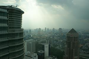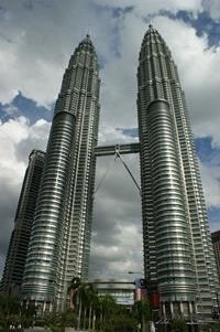 Petronas Towers (dt. Petronas-Türme, mal. Menara Petronas) (oft auch Petronas Twin Towers genannt) ist der Name eines vom Mineralölkonzern Petronas gebauten Wolkenkratzerpaares in Kuala Lumpur, der Hauptstadt Malaysias. Mit insgesamt 452 Metern Höhe überragen die Zwillingstürme die Stadt. |