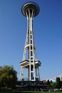 Space Needle (englisch für Weltraumnadel) ist ein 184 Meter hoher Aussichts- und Restaurantturm in Seattle, der zur Century 21 Exposition, der Weltausstellung 1962, errichtet wurde. Nachdem sich der Beginn der Bauarbeiten unter anderem durch eine ungeklärte Finanzierungsfrage hingezogen hatte, konnte er in einjähriger Bauzeit rechtzeitig fertiggestellt werden. Das Turmbauwerk war das erste mit einem drehbaren Restaurant in Nordamerika. In den folgenden Jahrzehnten diente es zahlreichen Fernseh- und Aussichtstürmen weltweit als Vorbild. |