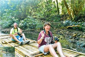 Heute unternahmen wir unseren dritten und zugleich letzten Ausflug in diesen Ferien. Gleich um die Ecke bei unserem Hotel ist die Sabaidee Jungle Bar welche von “Bamboo” geführt wird. Hier liessen wir auch meisten den Tag ausklingen bei einem guten Drink. Mit ihm machten wir heute den eher kleinen Ausflug in der Umgebung. Unser erstes Ziel war der Startpoint für das Bamboo Rafting. Dies war nur etwa zwanzig Minuten mit dem Auto entfernt. Die Fahrt auf dem Bambusfloss auf der Lum Ru Yai Fluss war eine schöne und entspannte Fahrt durch den Tropenwald. Unweit besuchten wir den Tempel Wat Lak Kaen. Anschliessend fuhren wir zur Navybase direkt am Meer. In der Base selbst befindet sich das Royal Thai Navy Third Fleet Turtle Nursery. Es ist eine Schildkröten-Aufzuchtstation, wo sie ausgebrütet werden und nach drei Jahren aufgezogen und freigelassen werden. Auch werden hier kranke und verletzte Schildkröten gepflegt und behandelt. Zum Schluss ging es nochmals etwas ins Landesinnere, wo wir ein paar Tiere sahen wie Krokodile und Elefanten. Leider nicht in freier Wildbahn. Die Elefanten werde da leider nur benutzt um Reitausflüge zu machen….. :-( Zu guter Letzt noch einen kleinen Wasserfall wo man sich abkühlen konnte. Gegen 13.30 Uhr waren wir zurück von unserem kleinen Ausflug und hatten noch genügend Zeit für den Strand und das Meer. Our last trip out we took with the taxi driver Bamboo who runs the Sabaidee Jungle Bar next door to our hotel. We've enjoyed many an evening here. We took a short trip with him to some local attractions. We left at 9.00am and our first stop was Bamboo Rafting which was about 20 minutes drive away. We enjoyed a 45 minute float down the Lum Ru Yai River. Very relaxing through the tropical rainforest. Just glad we didn't have to steer! After this a short drive and we reached the Wat Lak Kaen temple. We then headed off to the Royal Thai Navy Third Fleet Sea naval base on the coast where they rear turtles for release into the wild. They also care for sick and injured turtles. Further inland we could see some elephants that are unfortunately used for tourist rides into the jungle. We didn't participate but we saw other animals that they keep - parrots, peacocks, cockerels, crocodiles.. Our last stop was the Ton Pling Waterfall for a quick cool down. We arrived back at the hotel around 1.30pm. Enough time to enjoy the beach and the sea. |