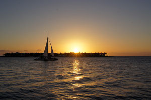 | Es ist wieder ein wunderschöner Tag angebrochen. Wir machten unser Auto startklar, tankten voll und fuhren los in Richtung Key West, dem südlichsten Punkt der USA. Die Strecke über die Key’s von Key Largo aus ist rund 150 Kilometer und führt über viele Inseln und Brücken. Es hat sich sehr viel verändert, als ich das letzte Mal vor knapp zwanzig Jahren hier war. Es war eine lange aber sehr schöne Fahrt. Nach dem Mittag erreichten wir unser Motel in Key West. Anschliessend parkten wir unser Auto in einem Parkhaus und gingen weiter zu Fuss nach Down Town. Es ist wirklich eine schöne und belebt Stadt. Natürlich mussten wir auch zum südlichsten Punkt. Um ein Foto zu machen konnte man kurz anstehen und einen Touristen frage ob er kurz abdrücken würde. So gegen Abend begaben wir uns zum Sunset-Pier, bestellten eine Kleinigkeit zum Picken und zum Trinken und genossen einen romantischen Sonnenuntergang. |
