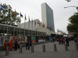 | Gut hatten wir die Tickets auf den One World Tower auf gestern gewechselt, denn der heutige Tag war mit dunklen Wolken bedeckt. Von unserem Hotel aus, welches das Howard Johnson Mayflower war, gingen wir zu Fuss los Richtung Central Park. Über die Queensboro Bridge und weiter bis zur 5 Avenue erreicht man den Eingang zum Central Park. Man braucht dafür eine gute Stunde ohne Kaffeepause, was wir natürlich machten. Das Wetter hielt und wir gingen etwas später der 5 Av entlang bis zur 42 St, auf dieser weiter bis zum UNO-Hauptquartier Gebäude. Bei der Registration, was gratis war, holten wir uns Tickets für den Eintritt ins UNO Gebäude. In der Zwischenzeit hat es auch begonnen heftig zu regnen. Im Verlaufe des Nachmittags nahmen wir dann die Metro zum World Trade Center. Hier befindet sich das 9/11 Memorial. Trotz den traurigen und schrecklichen Ereignissen vom 11. September 2001, sollte man sich dieses Memorial anschauen und genug Zeit einrechnen, denn es ist grösser als man denkt. Nebst den menschlichen Schicksalen gibt es auch viele technische Informationen. Hier steht auch der One World Trade Center, im Volksmund genannte Freedom Tower, mit seinen 541m. Luckily we had changed our tickets for the One World Tower as we woke up to grey cloudy skies. From our hotel, The Howard Johnson Mayflower, we set off on foot to Central Park. Over the Queensboro Bridge onto 5th Avenue where you can enter the park. This was a good hour on foot and the hotel receptionist thought we were mad and kept trying to tell us to take the Metro! After visiting a small corner of the park (it’s huge) and it was still dry we set off down 5th avenue to 42nd street and followed this to its end where the UNO headquarters is situated. The entry is free after showing our passports and registering. While we were visiting the UNO it started to rain heavily. We decided to take the Metro to the World Trade Centre to visit the 9/11 Memorial. Despite the very sad circumstances of the 11th September 2001 this is well worth the visit. You need time as the exhibition is enormous and very moving. Besides the stories about the people who died there is a lot of technical information. The foot prints of the old towers have been preserved and are now a water feature recording all the names of those who died. The One World tower also known as the Freedom Tower is also here and is 541 meters high. |