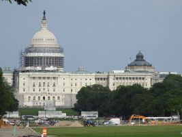 | Von Windwood, wo wir übernachtet haben, fuhren wir auf die andere Seite der Halbinsel nach Cape May. In Begleitung von ein paar Delphinen ging es mit der Autofähre noch Lewes. Die Weiterfahrt führte uns durch schöne flache Landschaften, wo auch nicht viele Leute wohnten. In Queenstown machten wir unseren Mittagsstopp. Weiter Richtung Westen fuhren wir über die Bay Bridge. Vom Sandy Point State Park aus konnte man die ganze Brücke sehen und Fotos schiessen. Zu diesem Zeitpunkt waren wir im Bundesstat Delaware. Gegen 16.00 Uhr erreichten wir Washington DC. Wir checkten ein im Motel Best Western Iwo-Jima in Arlington. Anschliessend machten wir und auf den Weg mit der Metro zu den Sehenswürdigkeiten von Washington DC. Leider ist vieles momentan eine grosse Baustelle, wie auch das Capitol. Nichts desto trotz, DC ist immer eine Reise wert! From Wildwood we drove the short distance (20 minutes) to Cape May to take the 90 minute ferry to Lewes accompanied by some dolphins. The onwards journey took us through some beautiful but flat countryside. A lot of agriculture and not many inhabitants. We stopped for lunch in Queenstown. Further west we drove over the Bay Bridge. From the Sandy Point State Park we could see the whole bridge and take a few pictures. This is in Delaware state. Around 4 pm we reached our hotel in Washington DC. The Best Western Iwo Jima in Arlington. As the weather was still good we headed off into the city. At the moment the Capitol Mall is being renovated and the Capitol building is covered however still worth a visit. |