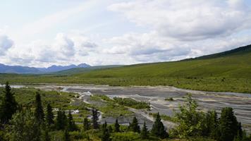 Heute, an einem leicht bewölkten Tag, fuhren wir nochmals in den Denali N.P. Auch hier im Park gibt ein einen Aussichtspunkt wo man den Mount Denali sehen konnte, doch leider auch diesmal, war er von Wolken verdeckt. Später packten wir unsere Rucksäcke und begaben uns auf eine kleinere Wanderung. Der Trail führte an einem kleinen See vorbei, bis wir dann wieder zurück beim Visitor Center waren. Eigentlich wollten wir den Denali Highway selber fahren, doch ist es nicht erlaubt mit dem Mietwagen diese Gravel Road zu fahren, da es hier keine Verbindung zur Aussenwelt gibt - kein Handyempfang.... Stattdessen buchten wir uns Plätze bei Denali Exkursionen für eine Jeeptour um 18.30 Uhr. Wir waren neun Jeep's, in allen bunten Farben, welche als Konvoi den Denali Hwy befuhren. Es gab viele Informationen via Funk in den Fahrzeugen und wir machten einige Fotostopps. Es war toll dies Fahrt zu machen bei dieser Abendstimmung, denn die Sonne ging ja erst um etwa halb elf unter. Auf dem Rückweg, als es etwas kühler wurde, liessen sich auch einige Moose blicken. Um elf Uhr waren wir wieder zurück mit schönen Augenblicken vom Denali Hwy.