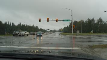 drizzling. The Alaskan oil pipe line also follows highway 4 which we could see