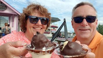 Heute hiess es erstmal Frühstück selber machen…. Wir hatten ein super B&B, wo uns alles zur Verfügung stand. Die Küche hatte alles was es zum Frühstück brauchte und mehr. Gegen elf Uhr verliessen wir Glennallen bei herrlichem Wetter und fuhren über den Alaska Highway 4 nach Süden. Beim ersten Viewpoint aus konnten man die weissen Berge vom Wrangell-St. Elias Nationalpark sehen. Ursprünglich hatten wir den Park auch auf unserem Plan, doch wäre es zeitlich knapp geworden und da war ja noch die Sachen mit dem Mietwagen und Gravel Road's. Weiter ging es südlich an Flüssen, Bergen und Gletschern vorbei. Der bekannteste Gletscher in dieser Gegend war der Worthington. Von der Strasse her ein toller Anblick. Etwas weiter dann der Bridal Veil und Horsetail Falls, die nicht gross aber schön anzusehen waren. Später erreichten wir den Hafenort Valdez. Die Fahrt dauerte etwas länger wegen Stopps und den zahlreichen Baustellen. Heute war unser 17. Hochzeitstag und zu diesem Anlass gingen wir in ein Restaurant und bestellten uns ein feines Lachsgericht. Anschliessend erkundeten wir noch etwas Valdez, kauften noch etwas ein für morgen, genehmigten uns noch eine feine Glace bei 22 Grad, bis wir uns dann wieder auf den Rückweg machten zu unserem B&B in Glennallen.