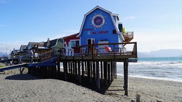 Was für ein Traumwetter zum Aufstehen bei rund 17 Grad. Nach zwei Nächten im Steller Inn in Seward, hiess es mal wieder packen. Da wir heute ein paar Meilen vor uns hatten, fuhren wir um acht Uhr los. Wie gewohnt erst mal was frühstücken und noch was kaufen für unser Picknick unterwegs. Die Fahrt führte uns erst nördlich bis zur Verzweigung, wo es dann nach Homer ging. Die Landschaft, die Berge, die Seen und dann noch das Meer war traumhaft bei diesem Wetter. Vorbei an Soldotna, einen Abstecher nach Kenai und weiter nach Ninilchik, ebenfalls ein kleiner Ort direkt am Meer. Hier hatte man einen tollen Blick auf die Berge vom nahegelegenen Lake Clark Nationalpark. Einige Meilen weiter erreichten wir den westlichsten Highway Point Nordamerikas bei Anchor Point. Gegen 16.00 Uhr konnten wir bereits schon Homer sehen, unser Ziel für heute. Erst bezogen wir unser Zimmer in eine B&B. Wir wurden freundlich empfangen und mit “viel” Informationen zugedeckt über Homer, was wir da alles machen können. Nur, dass wir knapp zwei Tag hier waren! Wir fuhren zum Homer Spit, dem südlichsten Teil des Ortes. Hier genossen wir das Meer, den Wind und die Sonne bei einem guten Nachtessen. Homer war für uns der schönste Ort auf unserer Reise. We awoke again to wonderful weather and 17C at 7.00am. After 2 nights in the Steller Inn in Seward it was time to enjoy on. As we had several miles ahead of us today we set off at 8.00am. Breakfast and picked up something for our picnic lunch then we hit the road. We drove north to the turn off for Homer which then took us south west. The countryside, the mountains, the lakes and finally the sea was delightful particularly as the weather was so good. We passed through Soldotna and made a short detour to Kenai City and onto Ninilchik, a small town on the coast with good views of Lake Clark National Park. A few miles on at Anchor Point the most westerly highway in the United States. We reached Homer at around 4.00pm. We checked into our B&B where we we given lots of information of what to do. I think we'll need a week! Unfortunately we are only here today and tomorrow. We drove out to Homer Spit where we enjoyed the sea, wind and sunshine. Had to be Halibut for dinner as this is the Halibut capitol apparently. Homer is one of the prettiest places we've seen here. |