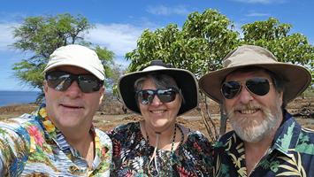 Nach einem kurzen Flug landeten wir auf der grössten Insel Big Island oder auch Hawaii genannt. Von Kona aus fuhren wir mit unserem Mietwagen nach Kailua Kona wo wir unsere Wohnung bezogen. Die Insel wirkte schon einiges ruhiger als Oahu, was die Touristen betraf. Mit unserem Shaka Guide erkundeten wir wohl jede Ecke der Insel. Auf der Insel war es sehr ruhig, was die Tätigkeiten der Vulkane angeht. Wir durchfuhren den Vulcano Nationalpark, wo keine rote Lava zu sehen war. Was wir leider, auch nach mehrmaligem verschieben, nicht machen konnte, war der Ausflug auf den Mauna Kea. Das Wetter spielte uns da leider einen Streich. Auf rund 4000m Höhe ist da eines der grössten Observatorium der Welt. Dafür hatten wir was zu feiern, denn am 12. Mai war der 60 Geburtstag von Rene. Wir gingen zum Einkauf und genossen einen tollen Grillabend von Grahams Grillkünsten, mmmhhh... After a short flight, we landed on the largest island, Big Island, also known as Hawaii. From Kona we drove in our hire car to Kailua Kona where we moved into our flat. The island seemed a lot quieter than Oahu as far as tourists were concerned. We explored every corner of the island with our Shaka guide. The island was very quiet as far as volcanic activity was concerned. We drove through the Vulcano National Park, where there was no red lava to be seen. Unfortunately, we couldn't make the trip to Mauna Kea, even after postponing it several times. Unfortunately, the weather played a trick on us. One of the largest observatories in the world is located at an altitude of around 4000 metres. On the other hand, we had something to celebrate, as it was Rene's 60th birthday on 12 May. We went shopping and enjoyed a great barbecue from Graham's barbecue skills, mmmhhh... |