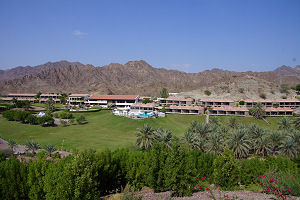 Nach dem Frühstück kurvten wir die etwa 12 km lange Bergstrasse hinunter nach Al Ain, wo wir als erstes unser Auto volltankten. Der Literpreis liegt hier bei 42 Rappen!!! Danach bahnten wir uns den Weg durch Al Ain um auf die Schnellstrasse zu gelangen, welch dann Richtung Hatta führte. Unterwegs passierten wir zwei Grenzkontrollen, da wir für ein paar Kilometer durch den Oman fahren mussten. Bei der ersten Kontrolle reichten unsere Pässe und bei der zweiten Kontrolle kein Pass, aber eine kurze Unterhaltung, denn der Zollbeamte war selber auch schon in der Schweiz. Kurz nach dem Mittag erreichten wir unser Ziel das Hatta Fort Hotel in Hatta. Die Hotelanlage war sehr schön und gepflegt, einfach ein Bijou. Wir besuchten das Hatta Heritage Village, das einst ein Oasendorf war aus dem 16. Jahrhundert. Hier erfuhr man etwas aus der Vergangenheit der V.A.E. Auch etwas weiter gab es eine Staumauer, wo der See nicht gerade viel Wasser hatte. Zurück im Hotel und noch kurz ein Sprung in den Pool. Nach dem Apèro ging es zum Nachtessen, wo uns das Menü vor unseren Augen zubereitet wurde. Das Essen war sehr gut mit diversen Extras, was so ein fünf Sterne Restaurant auch so bietet. Mit diesen Erlebnissen vom heutigen Tag und dem aktualisieren der Homepage ging es dann ins Bett. |