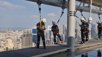 Heut war für mich dann ein doch etwas spezieller Tag. Wir fuhren zum The Address Sky View Tower unweit vom Burj Khalifa dem höchsten Gebäude der Welt. Mit dem Lift ging es auf eine Höhe von 219m. Nun stieg der Puls so langsam etwas an, denn ich musst mich umziehen, bekam Sicherheitsgurte umgeschnallt und einen Helm auf den Kopf. Meine GoPro wurde auf dem Helm befestigt und unsere Handys wurde in ein spezielles Etui getan, um es dann mitzunehmen. Nach dem wir gesichert wurden und die letzten Instruktionen erhielten ging es dann los auf den Sky Walk. Ein Walk auf einem Gitterrost, ohne Geländer und dies auf 219m. Es war atemberaubend und dann noch diese Aussicht….. Es gab da natürlich noch den Glas Walk für die etwas weniger Mutigen. Anschliessend hielten wir uns noch etwas in der Mall of Dubai auf beim Burj Khalifa. Später gingen wir noch zum Museum of the Future. Ein eindrückliches Bauwerk. Leider waren zu diesem Zeitpunkt schon alle Tickets weg. Na, dann halt das nächste Mal.