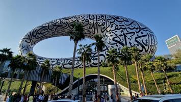 Today was for me then a somewhat special day. We drove to The Address Sky View Tower not far from the Burj Khalifa the highest building in the world. With the elevator it went to a height of 219m. Now the pulse rose so slowly something, because I had to change clothes, got safety belts strapped and a helmet on the head. My GoPro was attached to the helmet and our cell phones were put in a special case to take with us. After we were secured and given the final instructions we were off on the Sky Walk. A walk on a grid, without railings and this at 219m. It was breathtaking and then this view..... There was of course the glass walk for the less courageous Afterwards we stayed a little in the Mall of Dubai at the Burj Khalifa. Later we went to the Museum of the Future. An impressive building. Unfortunately, at this time all tickets were already gone. Well, then just the next time.